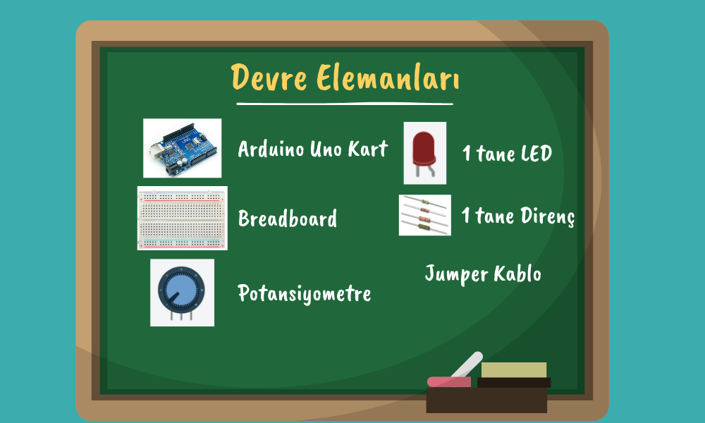 Herkese merhaba. Seçmeli Robotik Kodlama-2 dersimizde bu hafta LED kontrol devreleri kuracağız. Bu haftaki devre konularımız ” Potansiyometre ile LED Kontrolü” ve “Buton ile LED Kontrolü” .