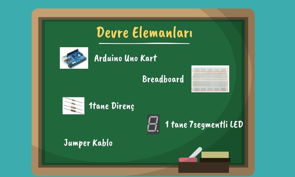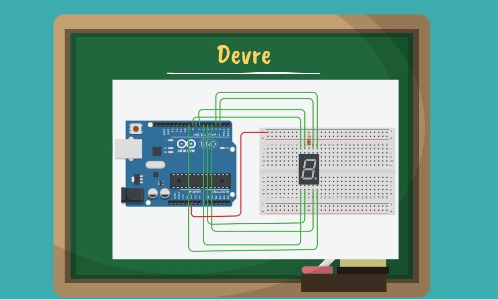 7 Segmentli LED devre elemanını tanıdığımıza göre artık devre kurabiliriz. Bu devremizde 0’dan başlayarak 9 kadar tüm rakamları 7 Segmentli Led üzerinde yazdıracağız.