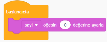 Bu devremizde “sayi” isimli bir değişken kullanacağız. Önce bu değişkenli oluşturalım. Bu değişkenin başlangıç değeri sıfır olması için aşağıdaki kod bloğunu yazalım.