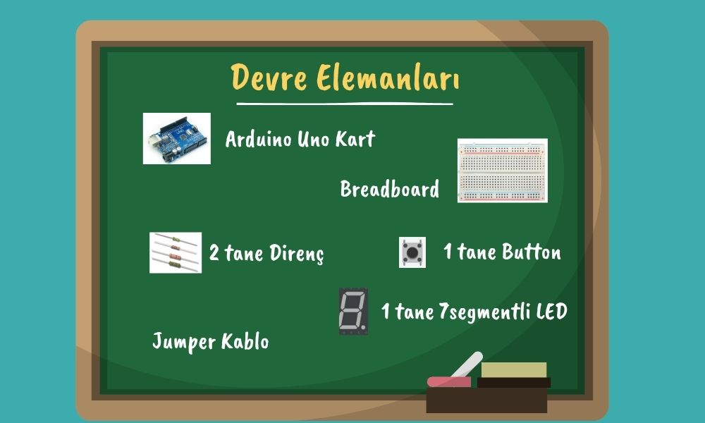 Bu devre için aşağıdaki devre elemanlarını kullanacağız.