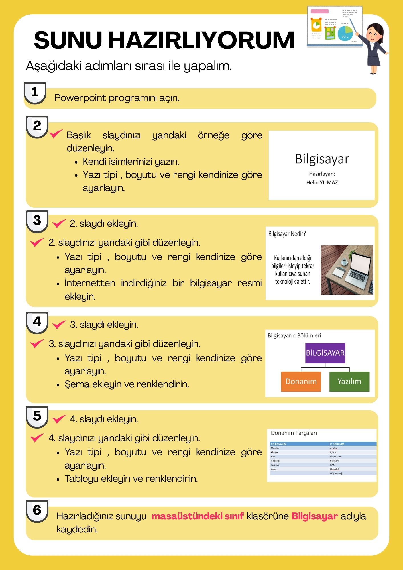 Hadi öğrendiklerimizi uygulayarak pekiştirelim. Aşağıdaki çalışma kağıdındaki maddeleri sırasıyla yaparak kendi sununuzu oluşturun.