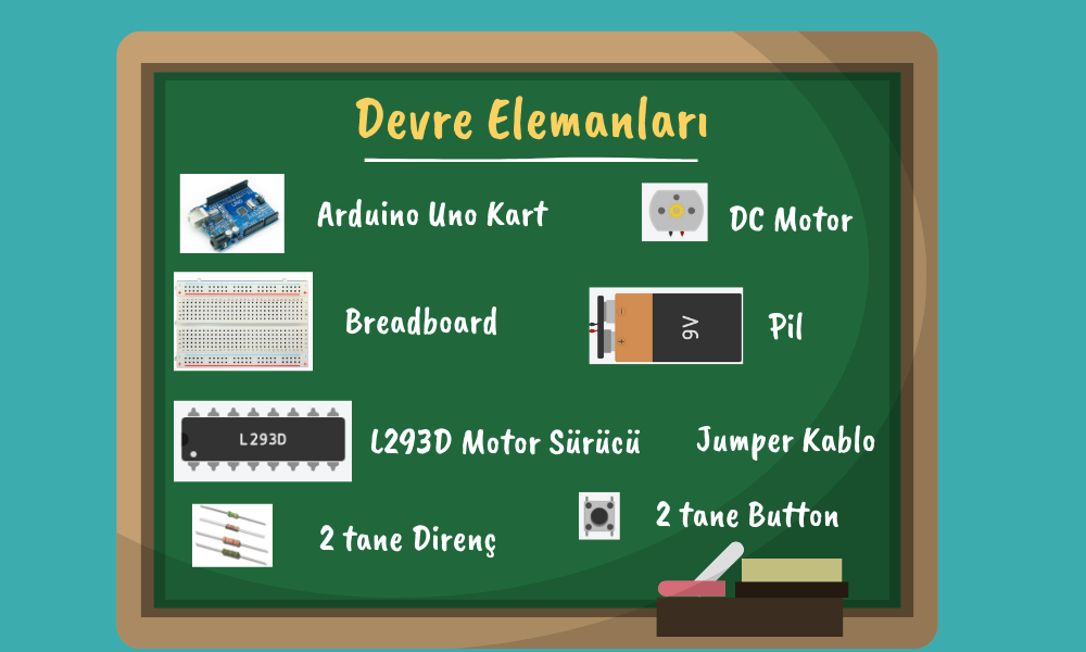 Bu devre için aşağıdaki devre elemanlarını kullanacağız.