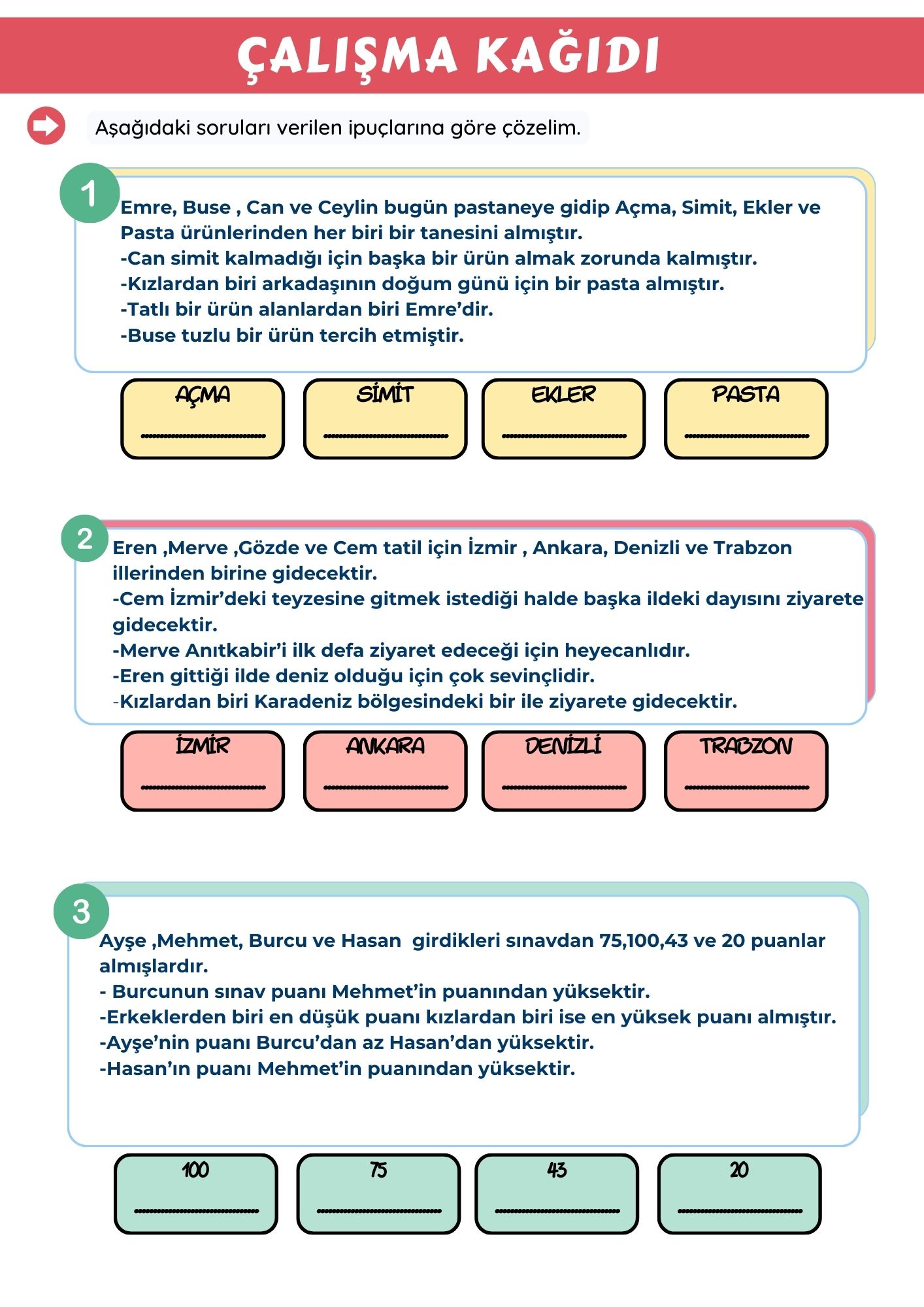 Şimdi sıra sende! Çalışma kağıdında verilen ipuçlarını takip et ve istenilenleri bul.