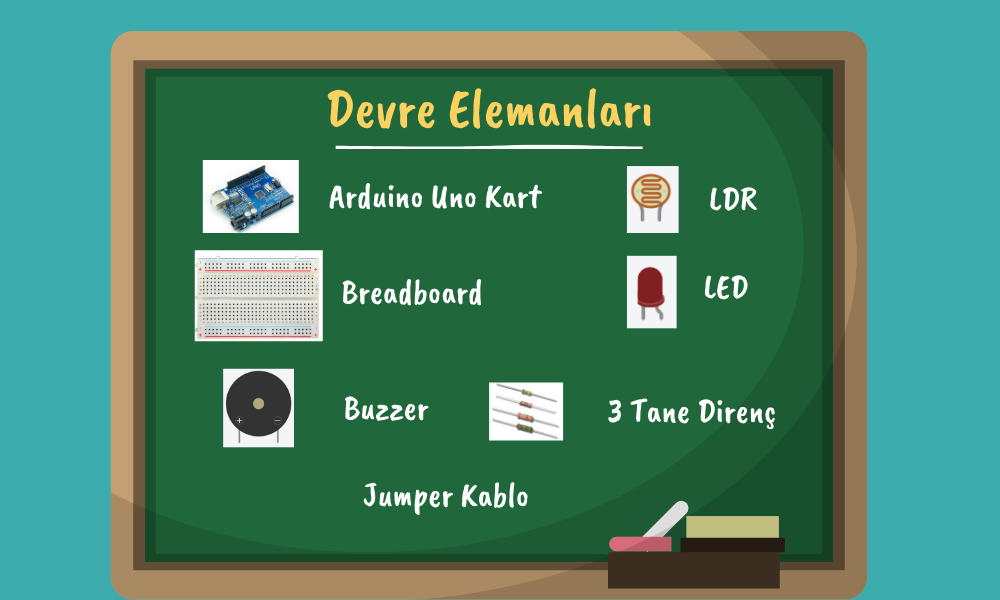 Bu devre için aşağıdaki devre elemanlarını kullanacağız.