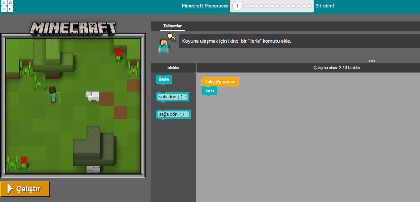 Steve ya da Alex ile birlikte code.org uygulaması üzerinden kodlama yapalım.
